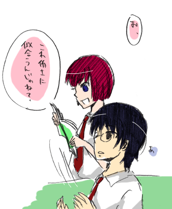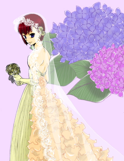 バカップル…というかバカなカップルです。 部室かどこかで部活前的な 「てか何でこんな雑誌持ってんだよ」 「ん?クラスの女子が騒いどってん。(妄想できて)面白かったから借りてきた」 そんな強引な設定 →新婦忍足 多分お色直しまで描くのは岳人だけです… 子供っぽい可愛いドレスの方が似合うから! 忍足の大好きな美脚を出さずして何を出す! 080607